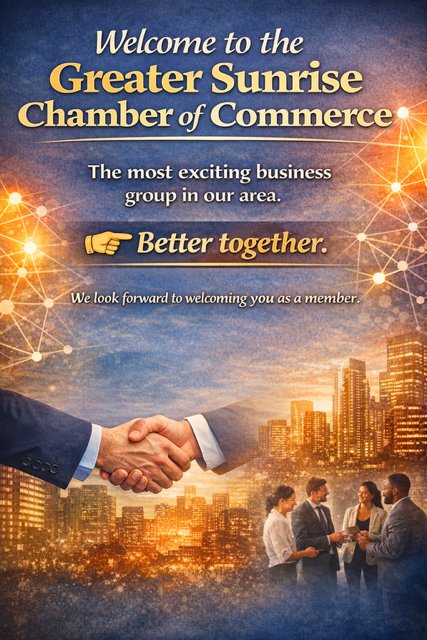 Founded in 1975 the Greater Sunrise Chamber of Commerce was created to represent the business community throughout the Sunrise area. We are an integral business network in the community working towards the common interests of all members. We offer credibility, visibility, support and more - as our members work to grow their business.